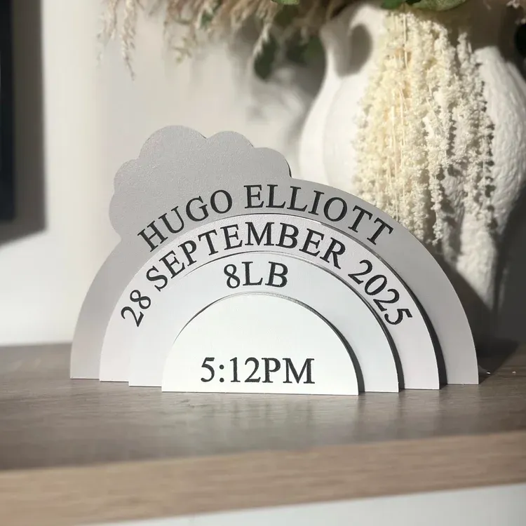 Fill in the relevant details (name, birthdate, time, weight) on the product page, and we will craft a custom piece that perfectly represents your baby’s special day.
