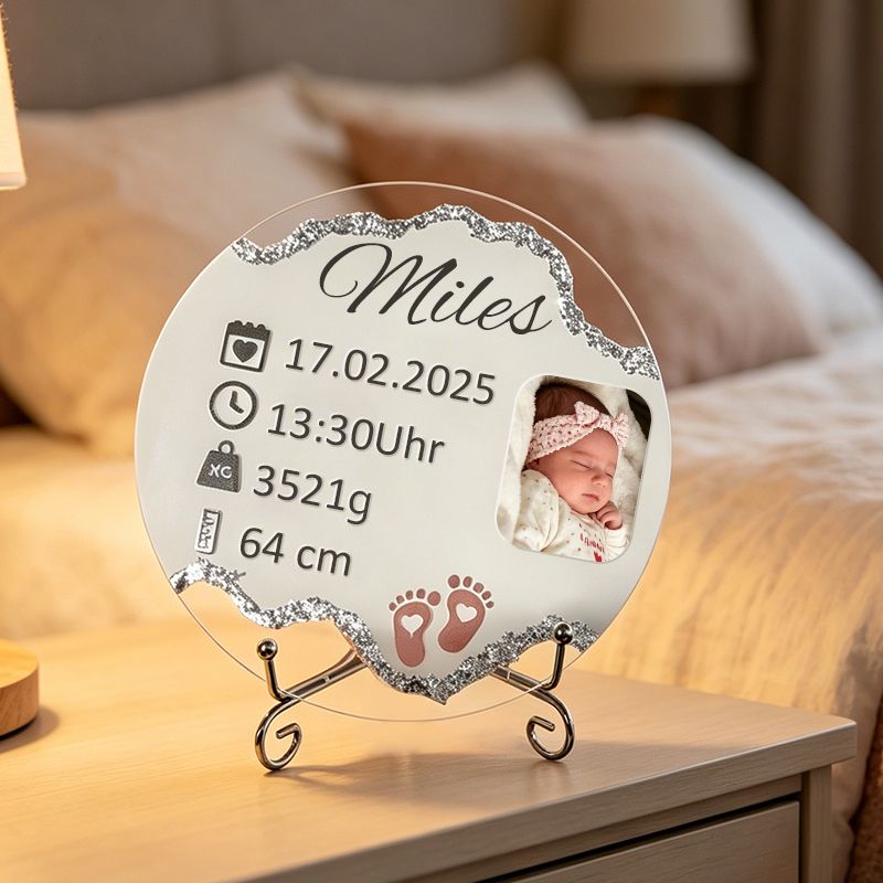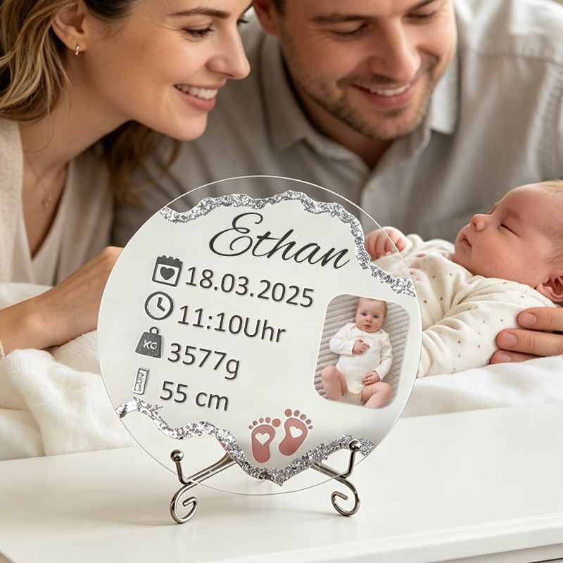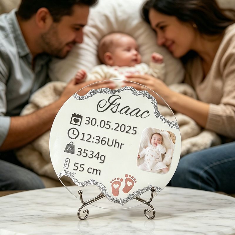 Celebrate the arrival of your little one with a beautifully personalized baby birth plaque. This elegant keepsake captures all the important birth details in one timeless design.