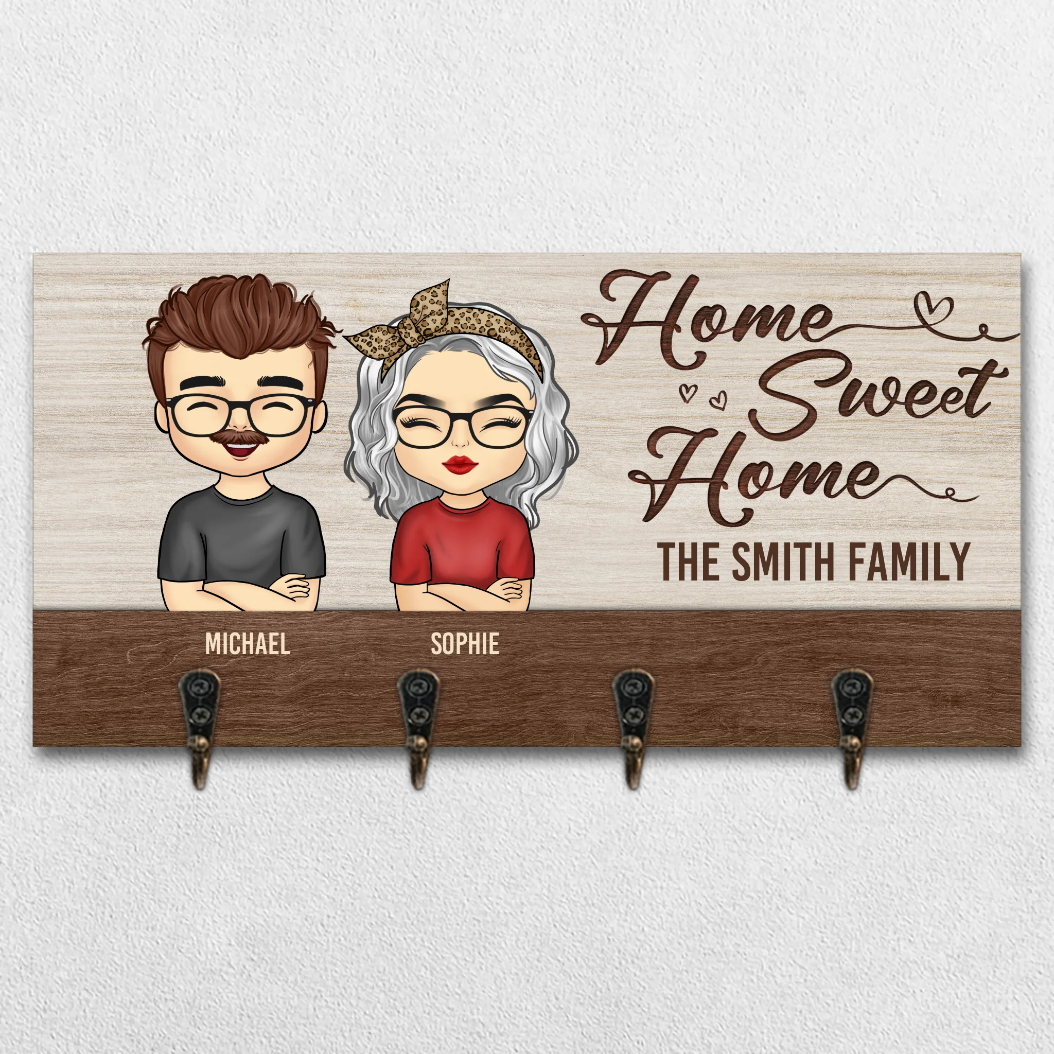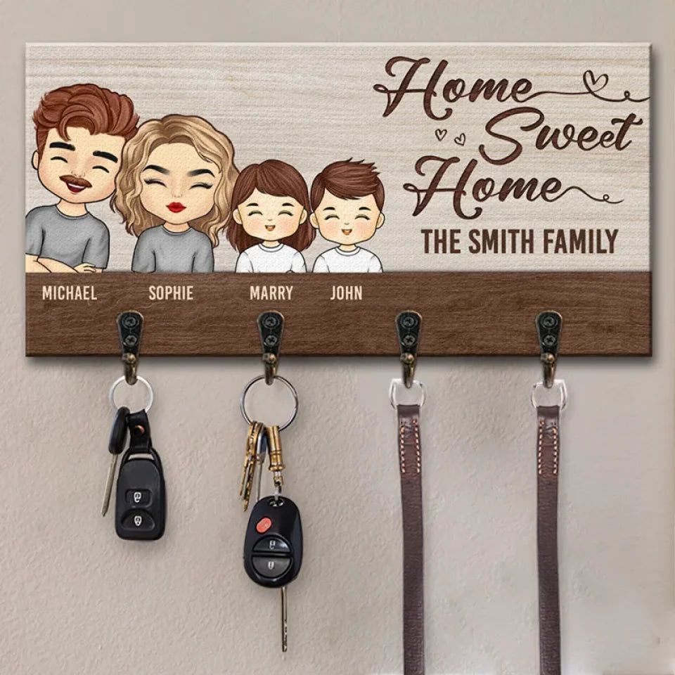 Home Sweet Home - Family Personalized Custom Home Decor Key Hanger, Key Holder - House Warming Gift For Family Members, Pet Owners, Pet Lovers
