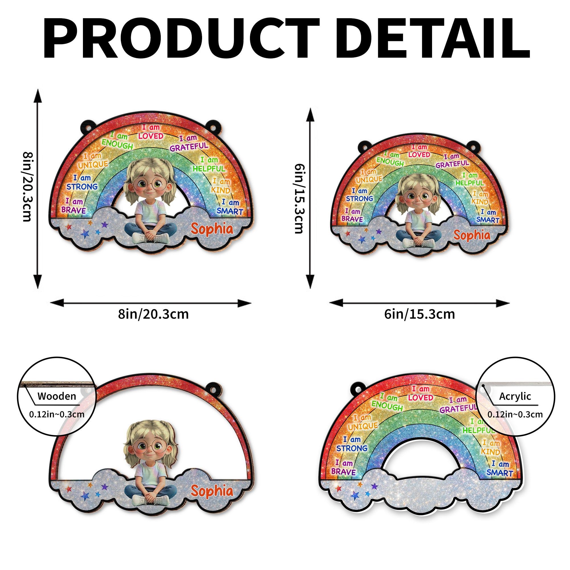 I Am Loved, Grateful, Kind Rainbow Suncatcher - Personalized Custom Suncatcher