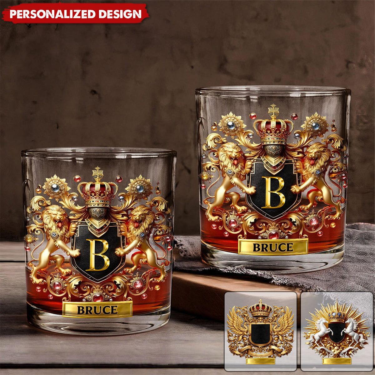Lion Eagle Horse Coat Of Arms-Personalized Whisky Whiskey Glass