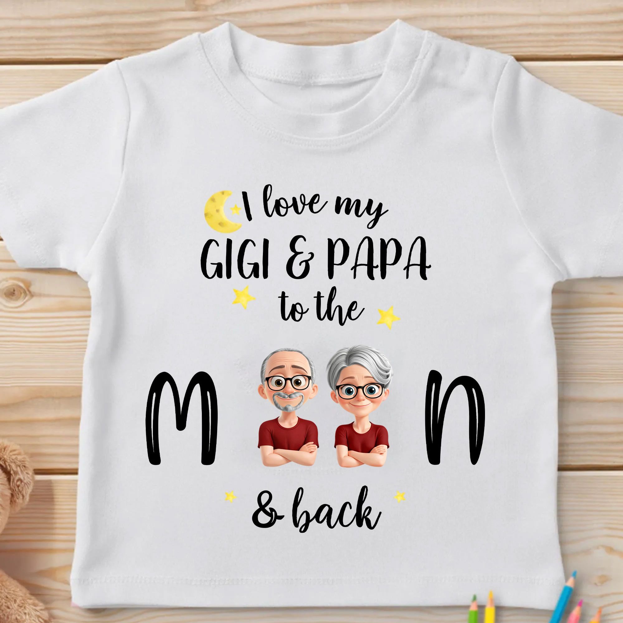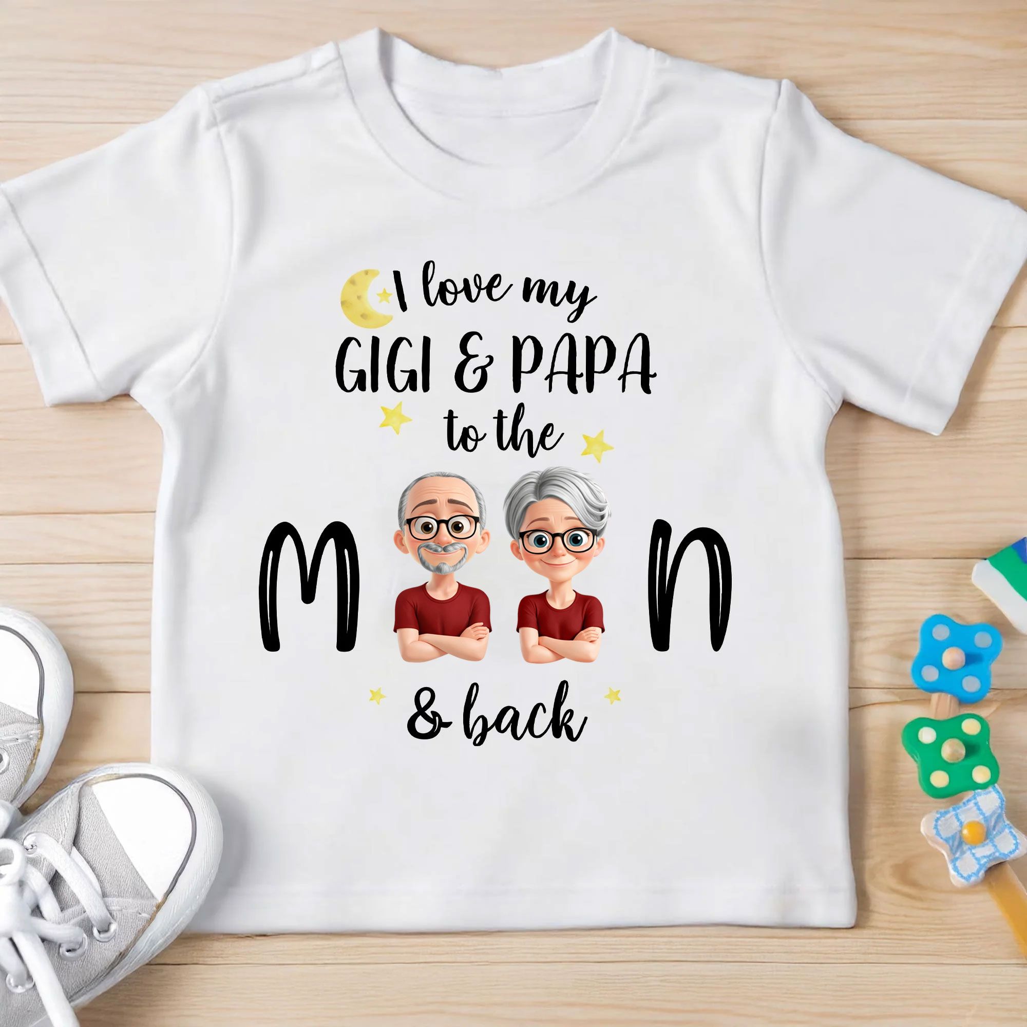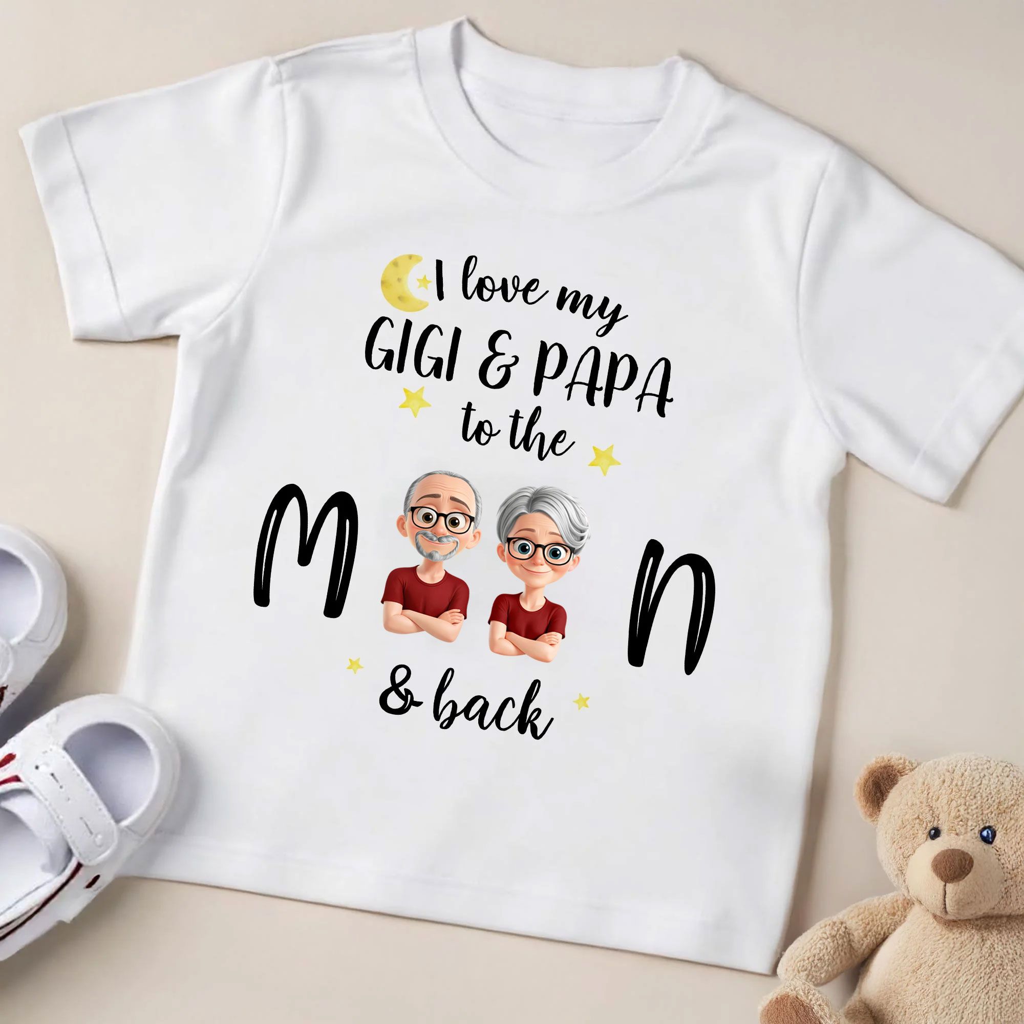 Show your love for Gigi and Papa with this adorable Personalized Youth T-shirt! Whether it's a gift for a birthday, family gathering, or a simple token of love, this customizable tee is sure to make your little one feel special. Featuring a playful and vibrant design, this shirt is perfect for children who love their grandparents to the moon and back.