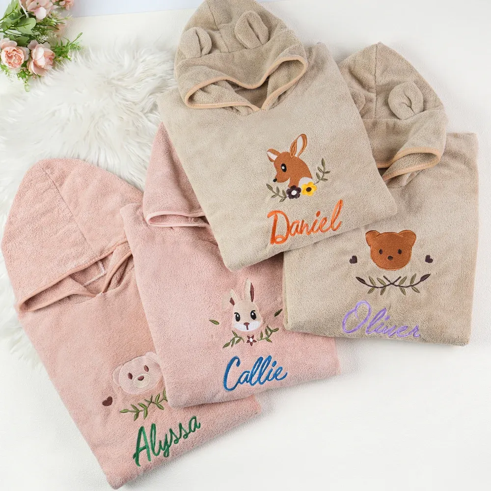 Personalized Cute Animal Coral Fleece Hooded Towel with Embroidered Name Summer Pool Bath Essential Baby Shower Birthday Gift for Baby Kid