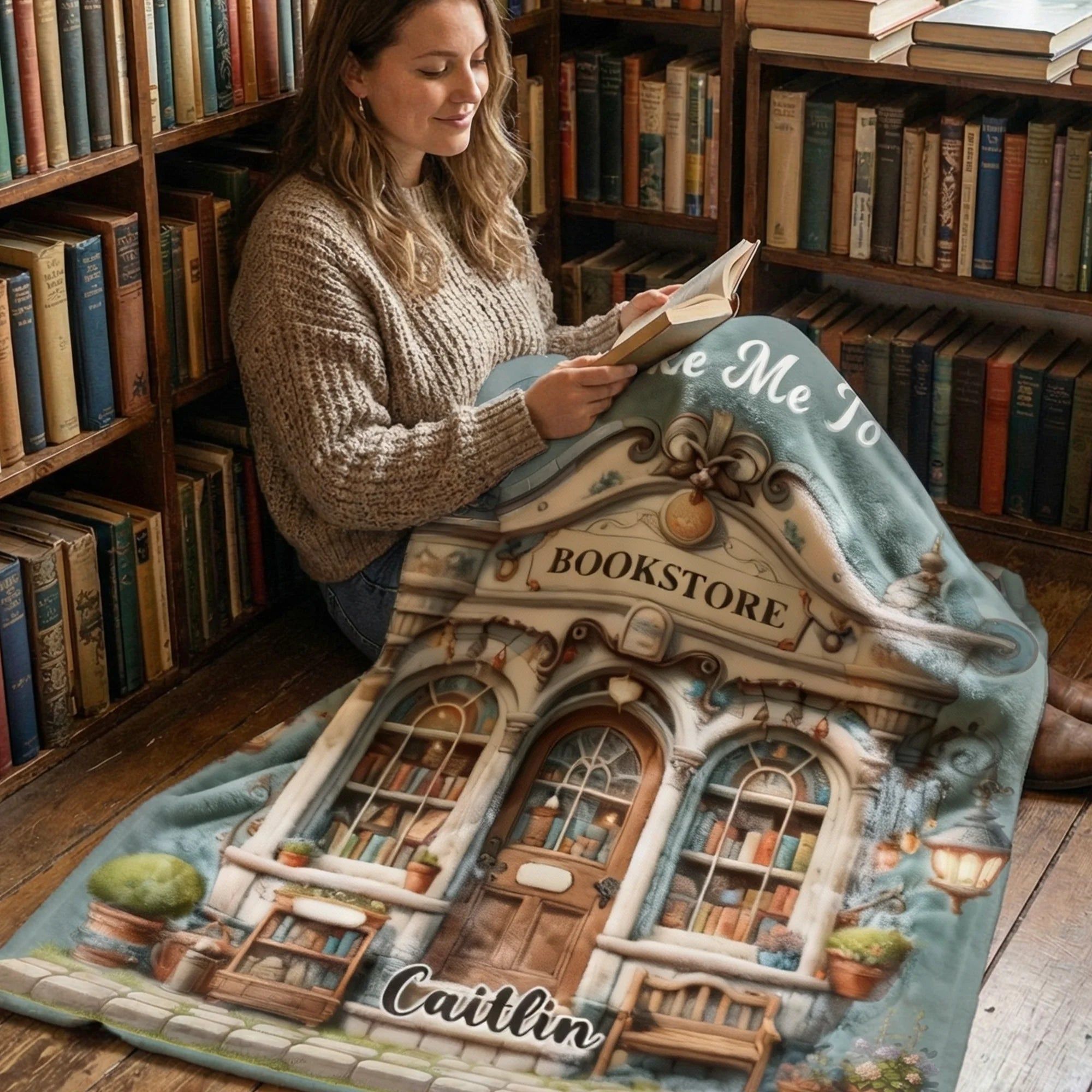 Personalized Take Me To Bookstore Soft Throw Blanket with Name Home Decor Birthday Gift for Book Lovers Bookworms