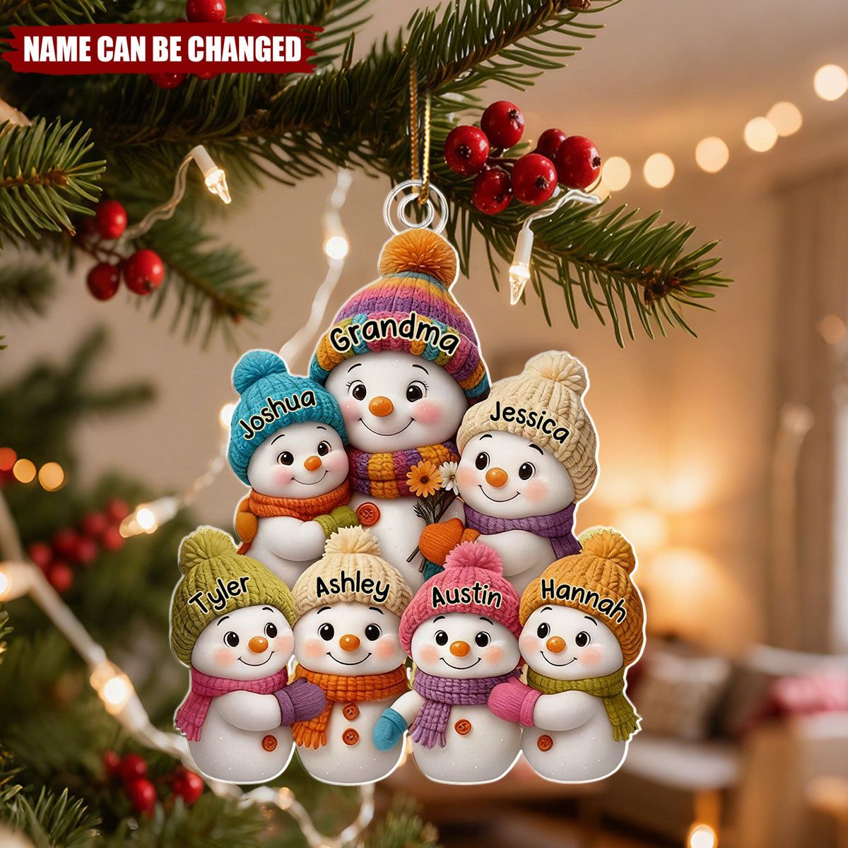 Snowman Grandma and Grandkids - Personalized Christmas Acrylic Ornament