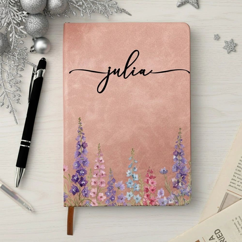 Custom Leather Journal for Her with Delicate Birth Flower Design – Personalized Writing Notebook, Meaningful Gift for Wife, Sister or Teen Girl