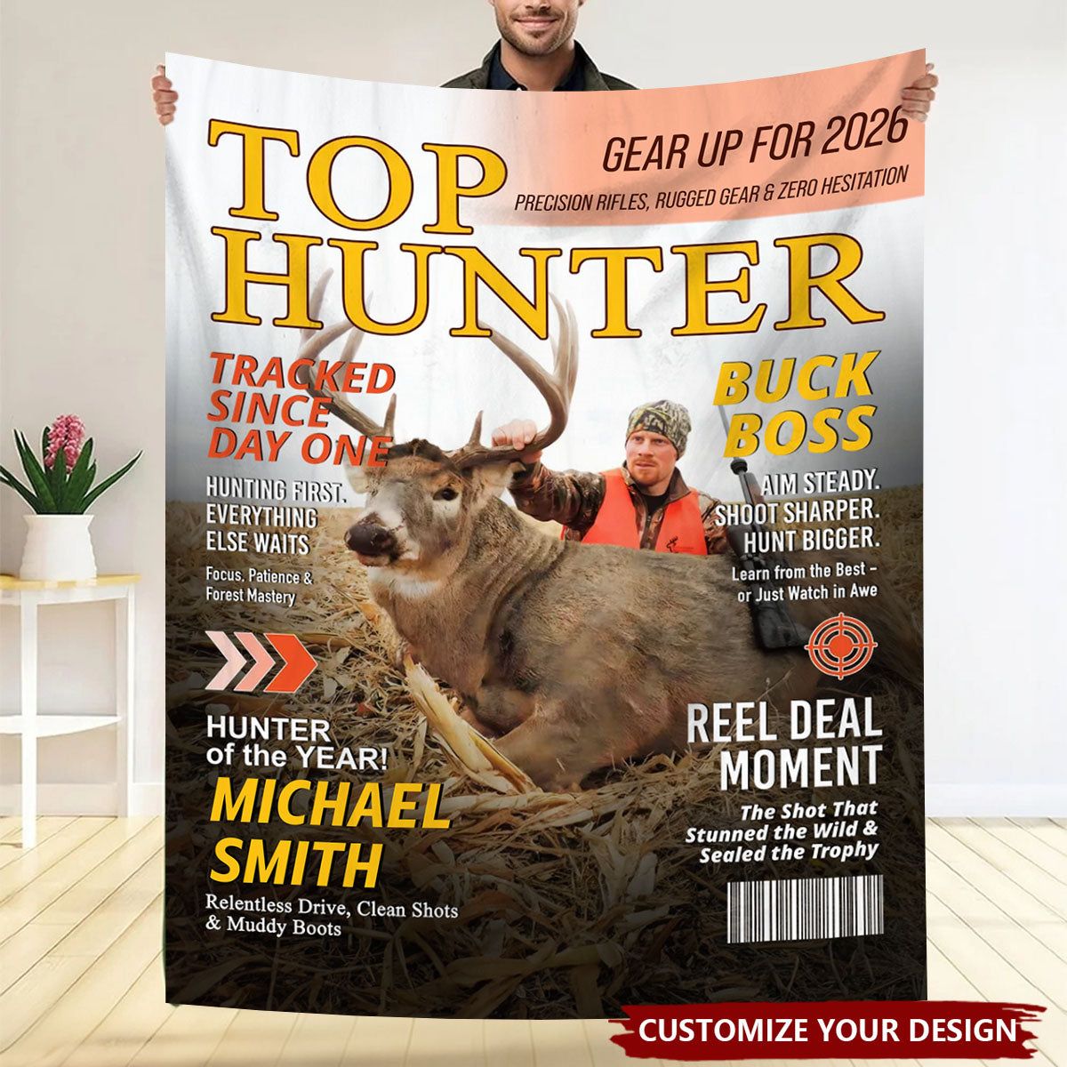 Custom Hunting Magazine Blanket, Personalized Hunting Gifts for Men