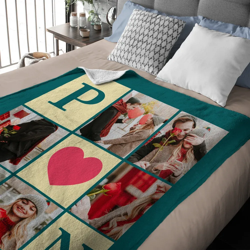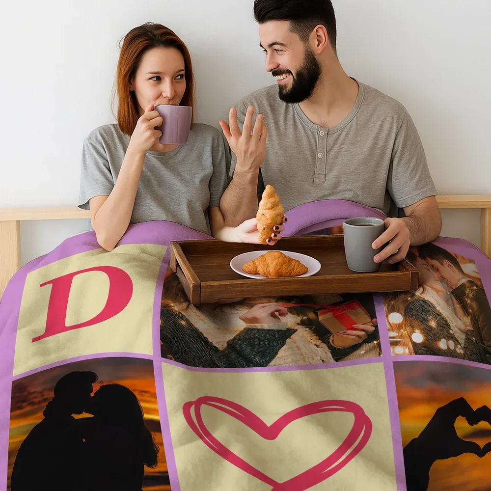 Personalized 6 Photos Collage Initial Soft Throw Blanket Home Decor Anniversary Valentine's Day Birthday Gift for Family Couples