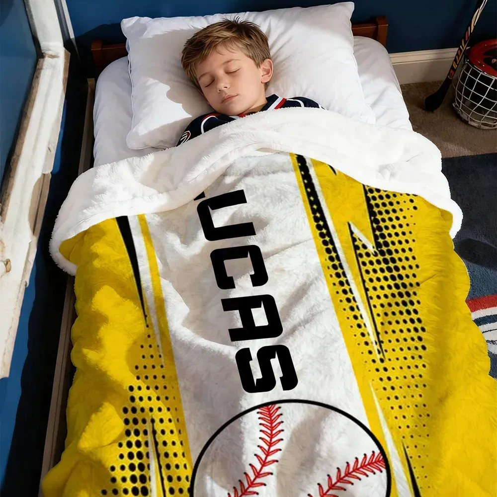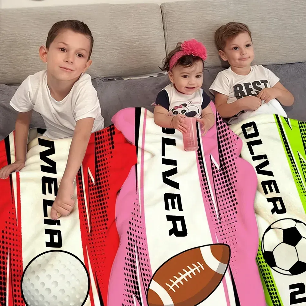 Personalized Sportball Soft Throw Blanket with Name and Number Home Bedroom Decor Birthday Gift for Sport Lovers