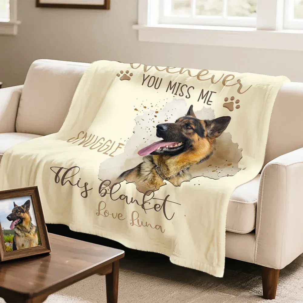 Personalized Whenever You Miss Me Snuggle This Pet Photo Soft Blanket with Name Sympathy Memorial Birthday Gift for Pet Owners Lovers